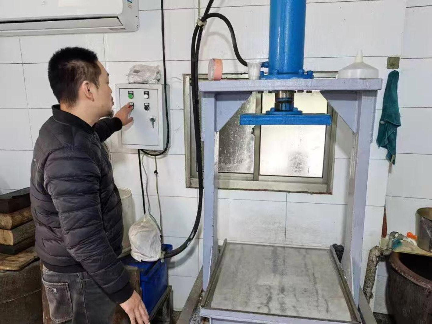 操作机器准备磨浆。