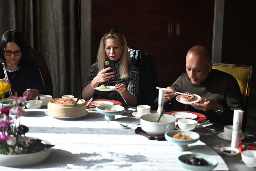 作为“世界美食之都”,扬州用一场舌尖上的盛宴,招待了远方来客。清晨的早茶桌上,香格里拉·香宫蟹黄汤包、翡翠烧卖、烫干丝的细腻鲜香,让旅行商们学会了“慢慢吃、细细品”的扬州节奏。“没想到一顿早餐能有这么多讲究,每一样都精致得像艺术品。”瑞士旅行商米里亚姆惊喜地说。