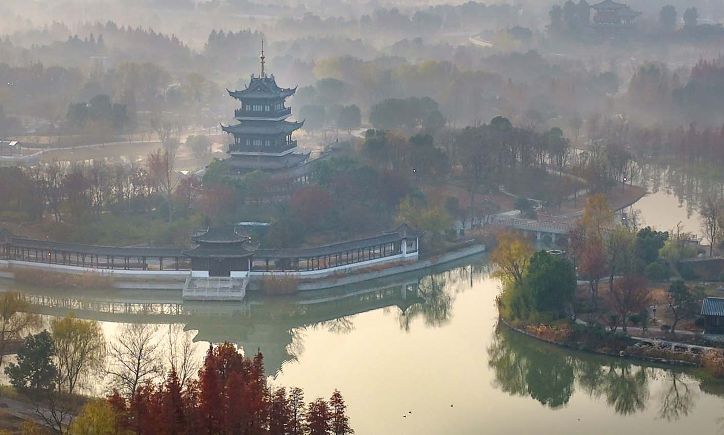清晨,初冬的仪征世博园内,薄雾如纱似梦,悄然漫过亭台楼阁,将这座集生态、人文与园艺之美的园区,晕染成一幅水墨丹青般的诗意画卷,吸引不少市民与游客早起寻雾、定格美好。 裴习健 司新利 摄