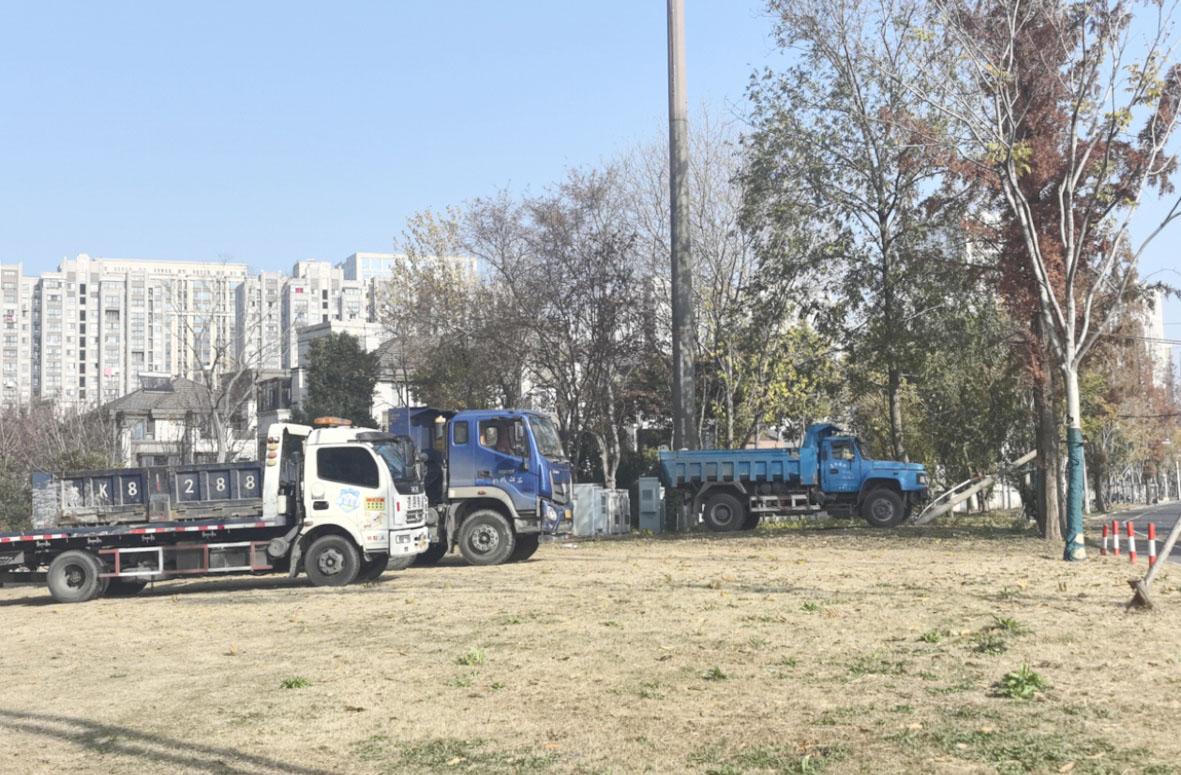 近日,记者来到市民反映路段探访。在长河路西北边是一片绿地,绿地上停着多辆货车,大都是从绿地没有隔离设施的一侧驶入的,绿地上有多道车轮印记。