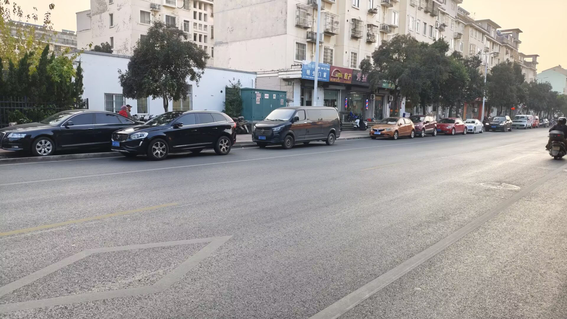 在现场记者看到,道路北侧路边画了不少公共停车位,道路南侧也有少量。但是,还是有不少私家车乱停,大部分在道路南侧,有十多辆,有的还停到了人行道上。该处路段是混合车道,骑车市民和机动车辆经过时,只能尽量避让,交通因此时不时会出现拥堵和混乱。