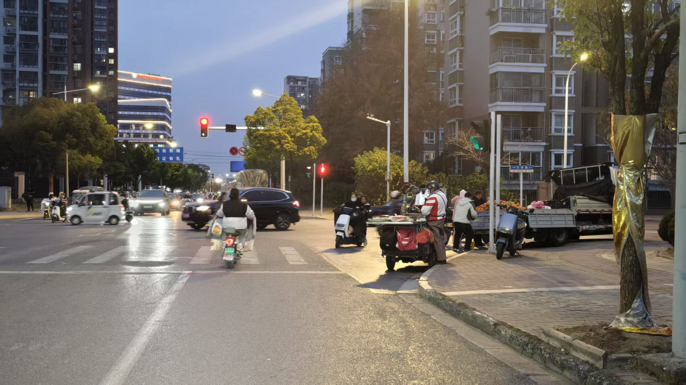 根据佟女士反映的问题,这几天傍晚5点多,记者多次路过九龙路与文苑路交叉口,看到附近有多名摊贩做生意,有卖小吃的,也有卖水果的。记者留意到,摊贩开着货车、卡车,或推着电动三轮车过来做生意,货车车身大,停在拐角位置令拐弯市民出现视觉盲区,不利于通行安全。
