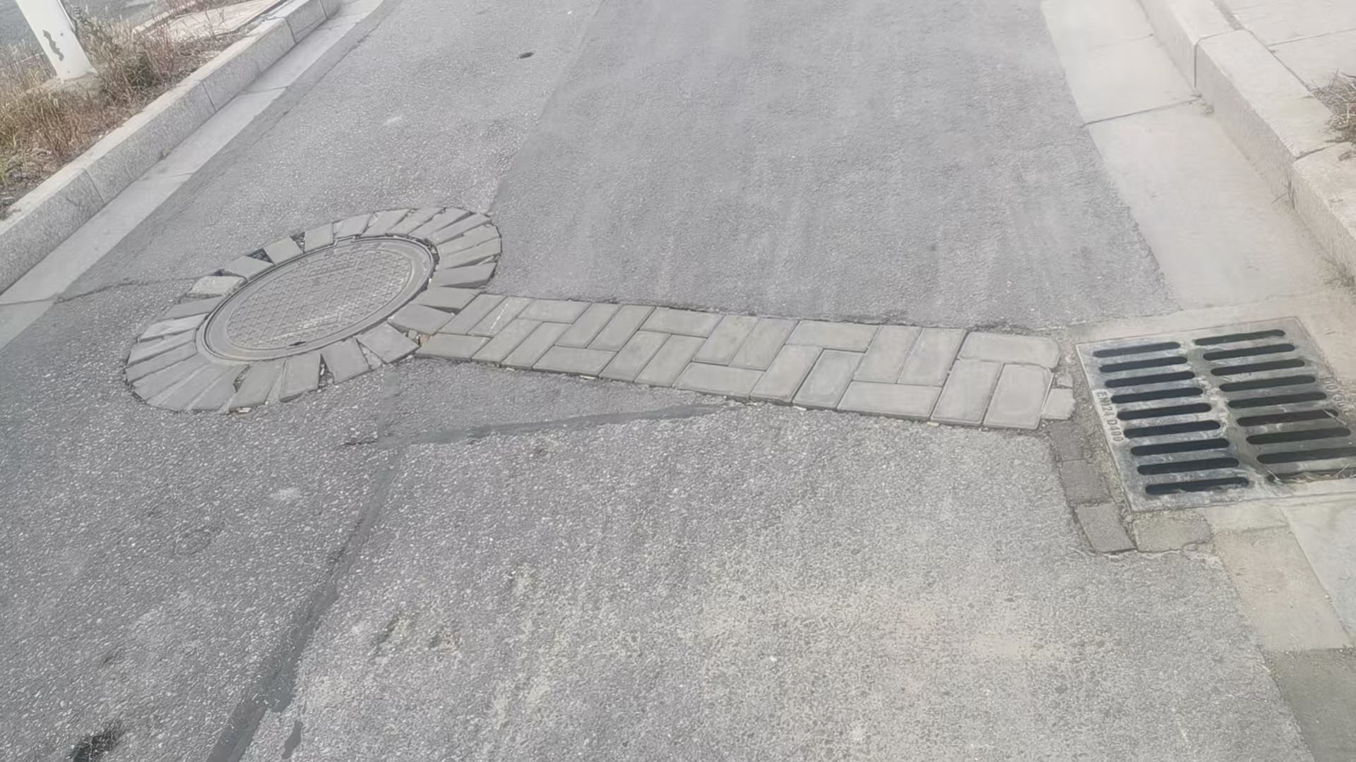 窨井周边开了槽
