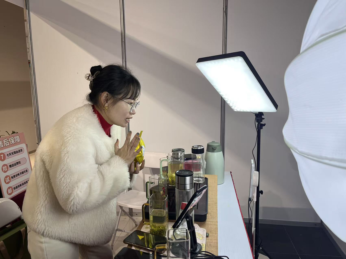 在仪征经营捺山捺茶茶场的孙蓉蓉为了给自家茶叶拓宽销路,也摸索着开通直播间干起了主播,和老公两口子轮流上播。相较于雇专业主播带货,老板和老板娘亲自上阵,不仅可以节约成本,而且对产品更加了解,细致讲解无“套路”的直播方式更能“吸粉”。