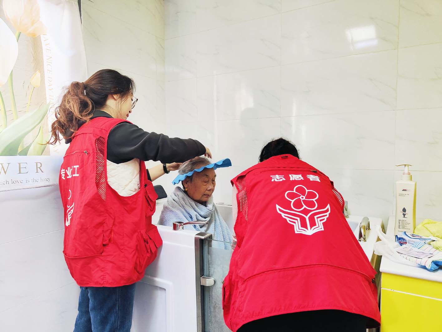温度,则让服务浸润人心。助浴师会提前用取暖器将浴室温度升至24℃—26℃,避免老人着凉;采用“擦浴+局部冲洗”相结合的方式,动作轻柔如抚。面对颈椎、腰椎不便的老人,全程协助调整舒适体位,并以柔软毛巾悉心擦拭。沐浴结束后,不仅用吸水毛巾轻轻拍干身体,还会贴心涂抹保湿乳,呵护老年人易干燥的肌肤。过程中亦注重隐私保护,保持适当距离,并通过闲话家常缓解老人的紧张情绪。“我们不仅要让老人‘洗得安全’,更要‘洗得舒服’。”何园社区相关负责人说,助浴师会随时询问并调整水温、力度等细节,于细微处传递关爱。