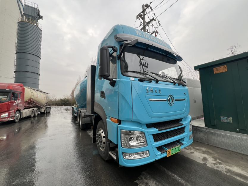 12月26日下午两点多,位于扬州市邗江区竹西街道的扬州绿杨水泥发展有限公司装货区里,一辆蓝色东风电动重卡正缓缓倒车。司机周万叶拉上手刹,利落地跳下车,几步走到充电桩前,依次拔下水枪、充电枪A、充电枪B,转身插进车上对应的接口。
