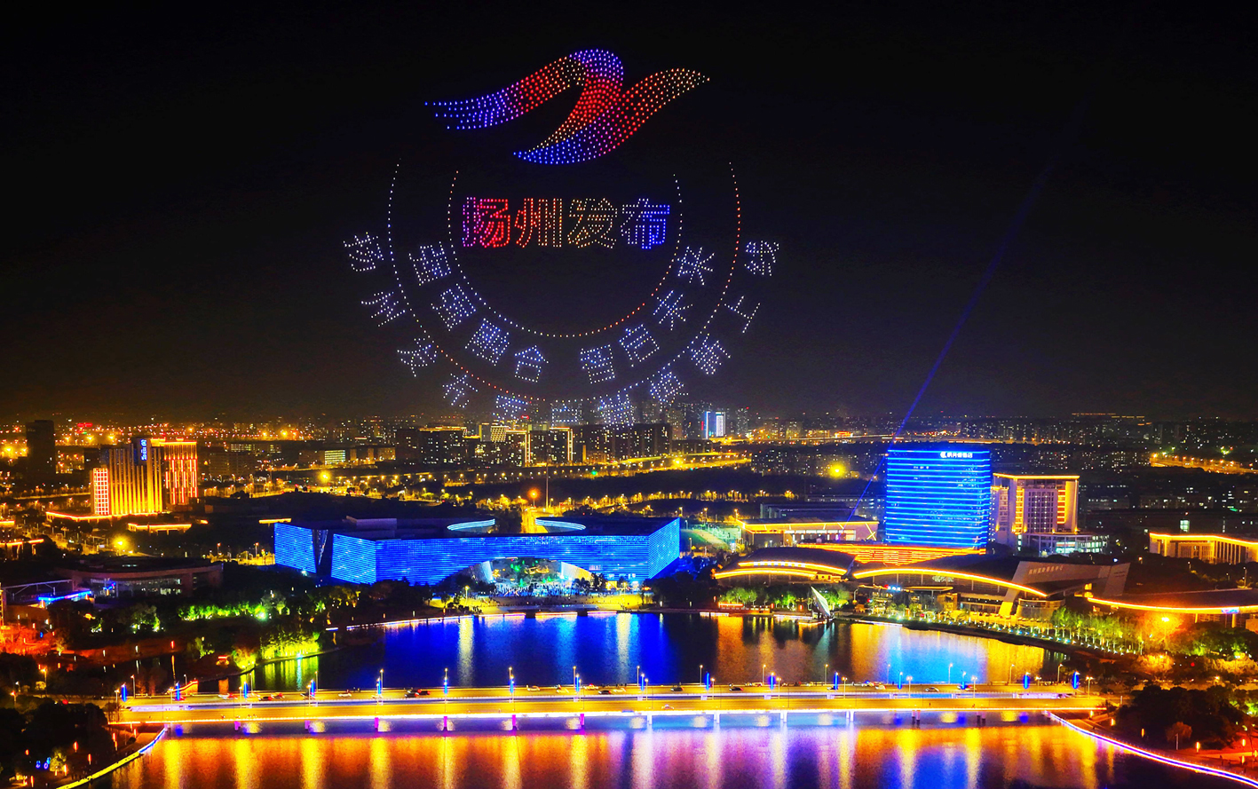 这场精彩的光影盛宴由扬州东寰无人机科技有限公司执行,特别得到了扬州移动、邗城地产、阿迪达斯、维投地产、捺山那水等品牌大力支持。用闪烁着灯光的无人机编队生动地展示品牌形象,成为扬州市新闻传媒中心(集团)低空经济品牌宣传的首次尝试。