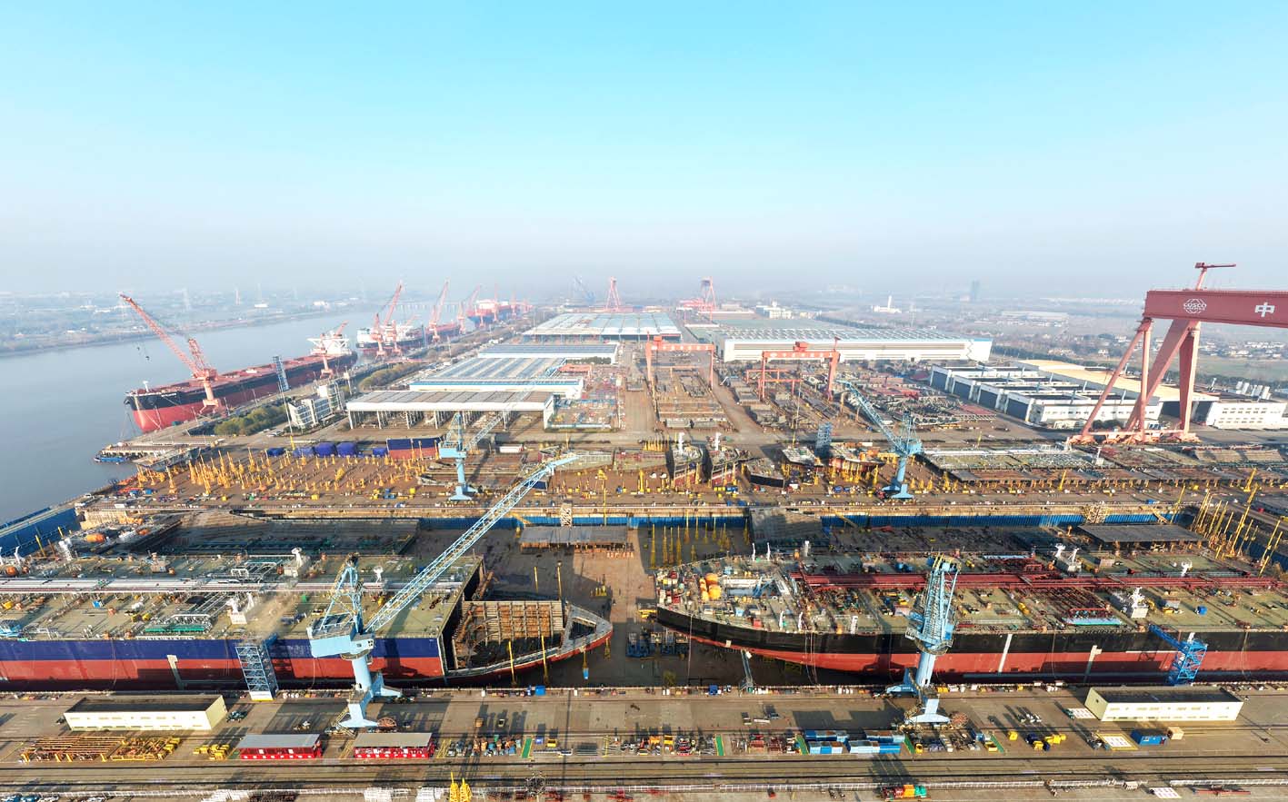 临近岁末,扬州中远海运重工有限公司厂区一片繁忙景象,工人们抓紧建造各类大型船舶,冲刺“全年红” 。 孟德龙 摄