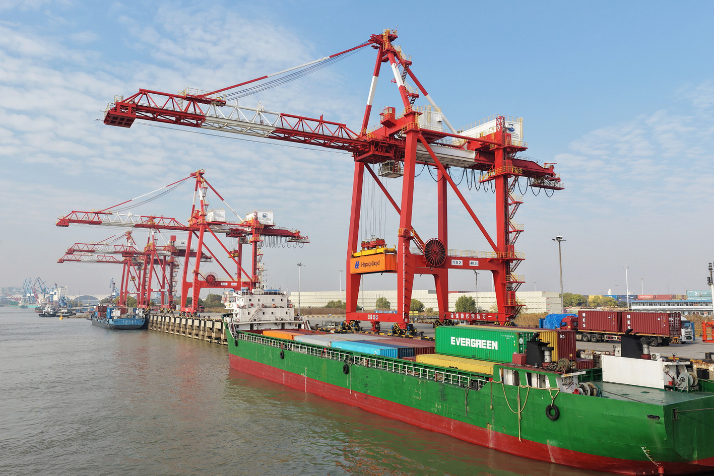 1月2日出版的《人民日报海外版》刊发由扬州市新闻传媒中心记者孟德龙航拍的题为“装卸船舶”的新闻图片。岁末年初,扬州港码头有序高效运行,卡车在集装箱堆场往来穿梭,岸桥高效运转装卸船舶,一派繁忙景象。 孟德龙 摄