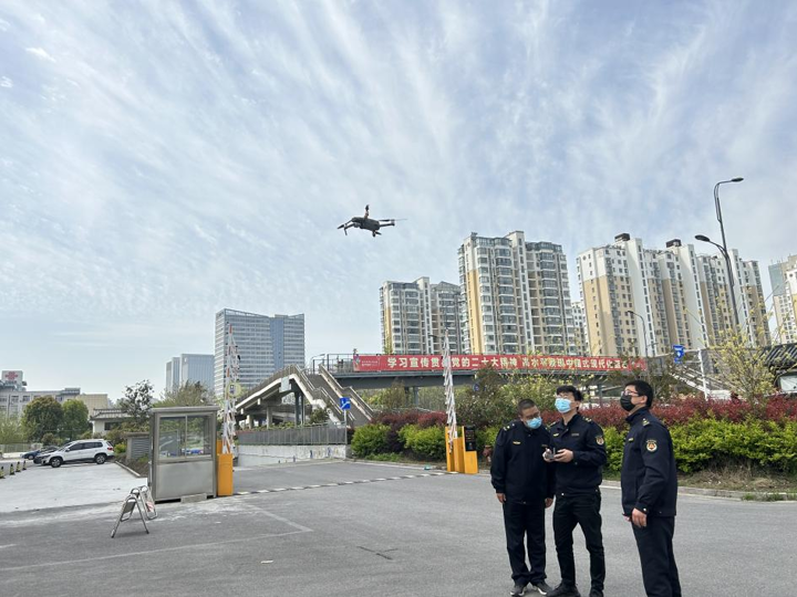 无人机不仅是“环境监察员”,更是关键时刻的“守护者”:在校园周边上空,默默守护孩子们上学放学;在企业厂区上方,紧盯安全生产风险隐患动向;在老旧小区楼栋间,及时发现被杂物堵塞的消防通道。为了让这份守护更专业可靠,扬州经开区政法委专门制定《全区政务无人机使用管理细则》以及《操作指南》,明确飞行流程、飞行要求、飞行责任,并定期开展实战演练,累计组织开展巡飞600余架次。