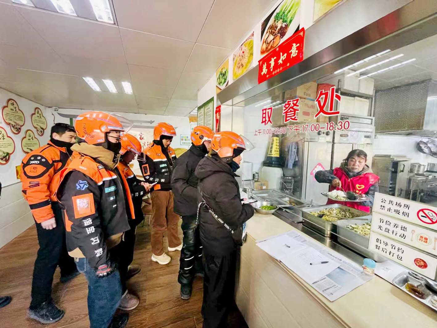 骑手、小哥们吃上 “心盒饭”。陈云飞 摄