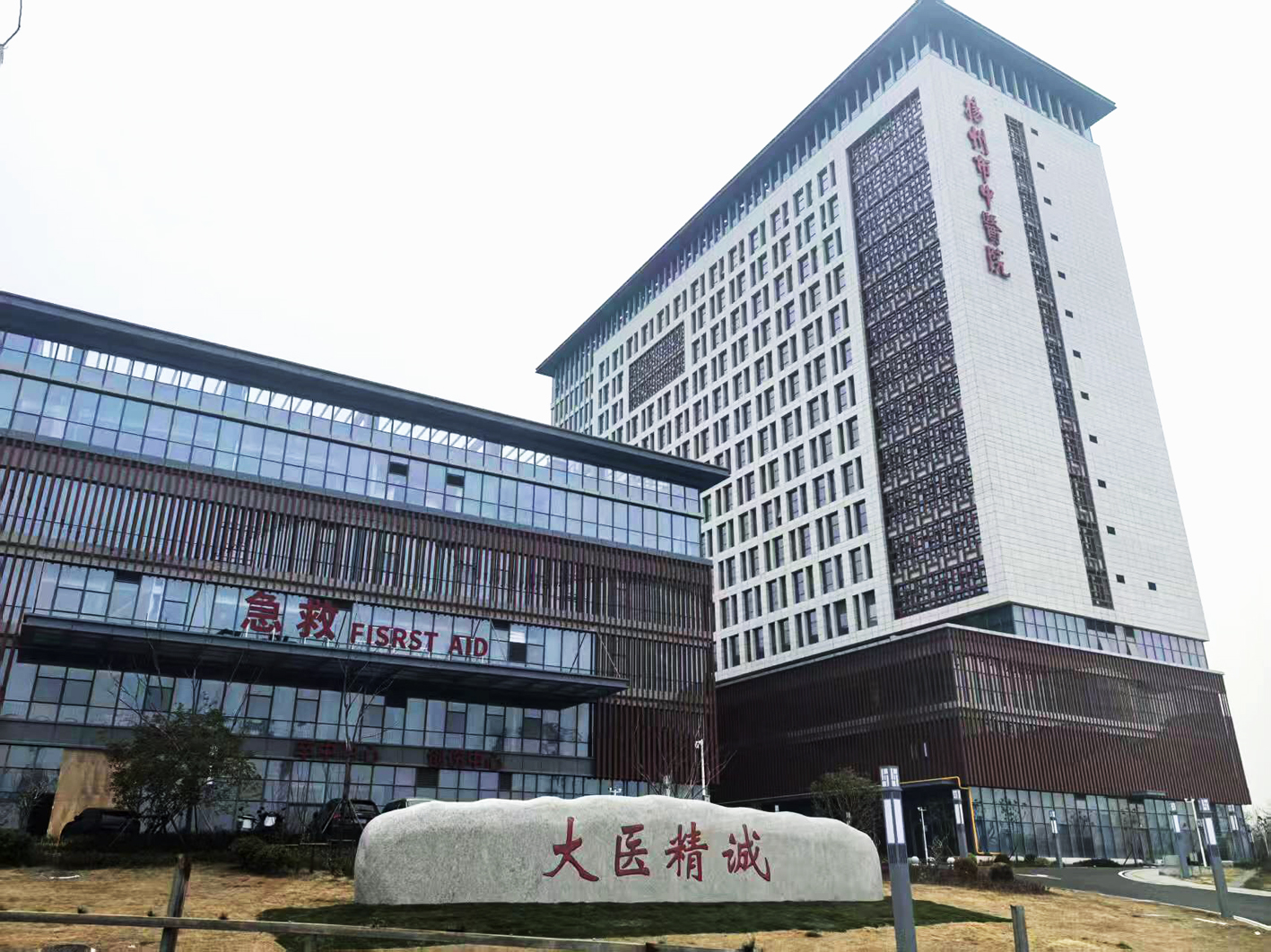 市中医院新院区位于翠岗路和真州北路交叉口西北角,一期工程总建筑面积123311平方米。医疗综合楼下设两层地下室,北侧病房楼为地上16层,南侧门急诊医疗综合楼、医技楼为地上5层。
