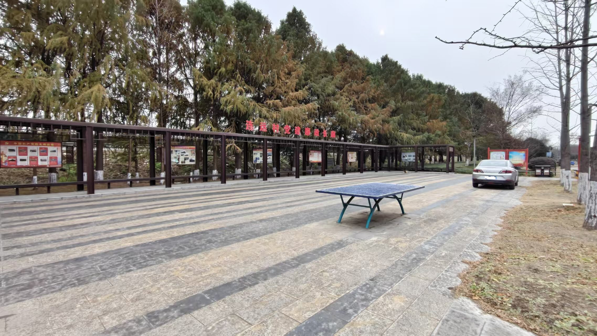 探访中,记者找到了周先生所说的“连运村党建廉政长廊”。记者观察发现,这处地点整体环境清爽整洁,不过相关配套设施有点简单,只有一张乒乓球桌,还有个别车辆临时停在长廊附近空地上。