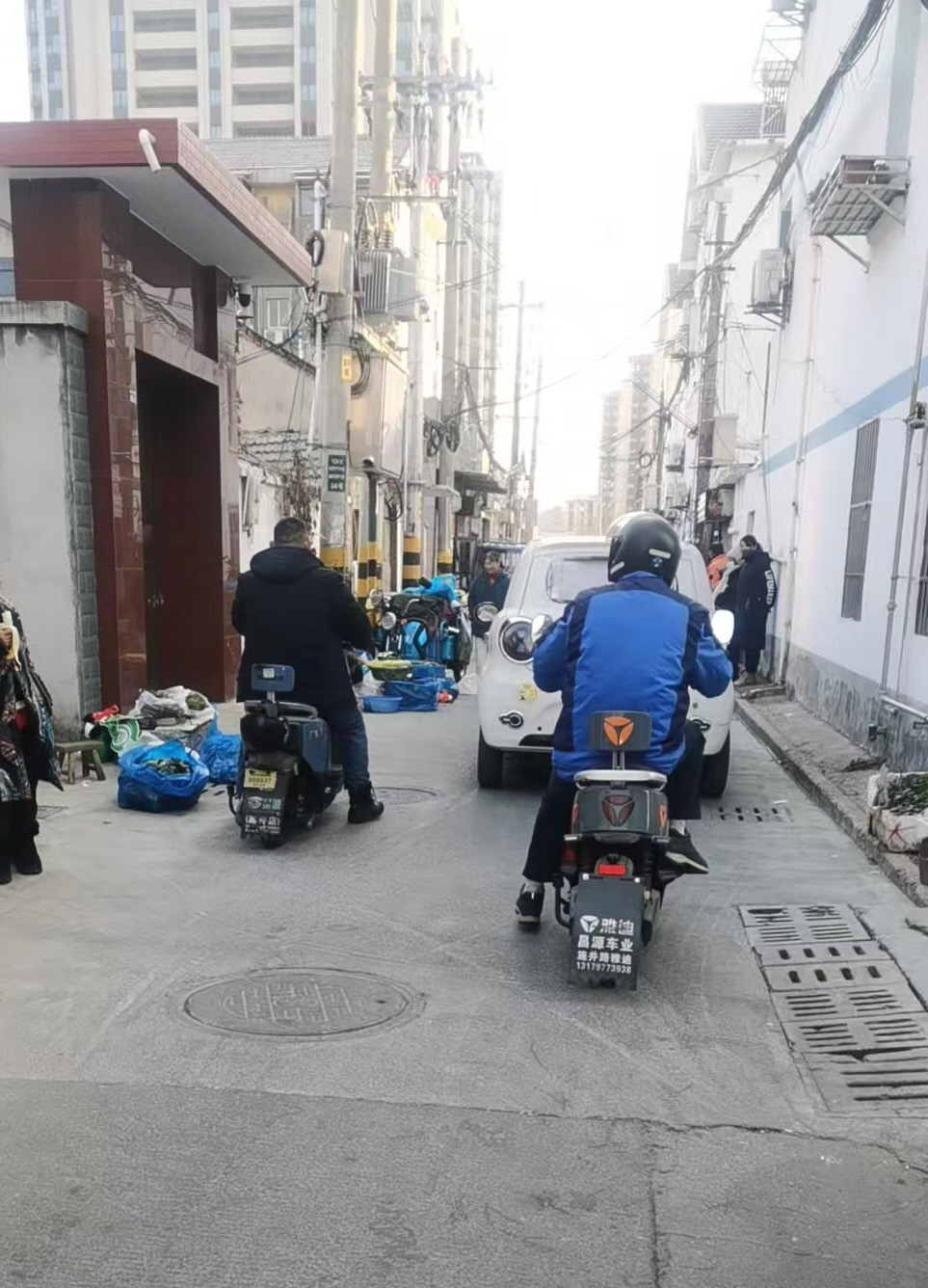 网友告诉记者,最近沙口巷陆续出现了一些摊点,最多时有十多个。他们骑电动三轮车来,把车停在巷子里售卖蔬菜、水果、干果等商品,不像是附近菜农种的菜。虽然方便了附近居民买菜,但是巷子被电动三轮车和摊位占去了一半宽度,影响了正常通行;如果摊位前围了两三个人,路过的人和车就不得不停下来了。
