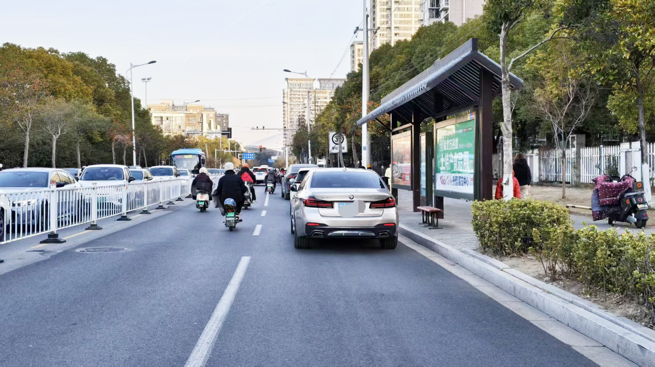 汽车停在公交站台附近