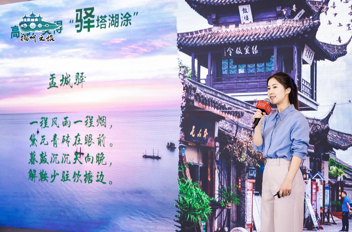 高邮文旅推介官带大家走进汪曾祺先生的故乡,解锁“好事成双”的运河小城风情;仪征文旅推介官则推介了“风物淮南第一州”的山水底蕴与千年“江上盐都”的独特魅力;扬州水上游产品推介官为现场观众描绘了乘画舫游运河的浪漫场景,让“流动的扬州画卷”更添吸引力。