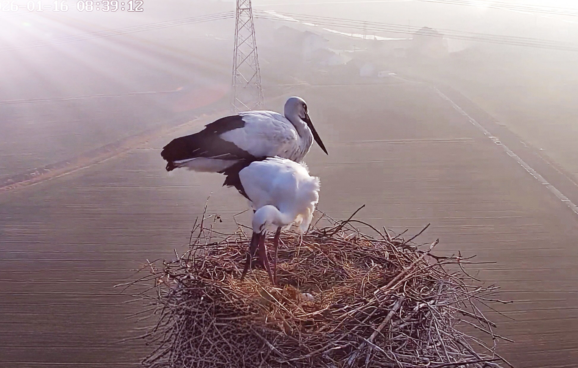 这对备受关注的“网红夫妇”产蛋时间从去年的1月30日提前至今年1月16日,再次刷新了人们对这一物种繁殖习性的认知。根据观察,目前在高邮有30多对东方白鹳进入繁殖期,它们的“爱巢”均位于高压铁塔上。接下来,这对鹳夫妇将轮流孵蛋,高邮境内其他东方白鹳家庭也将陆续进入产蛋孵化期。