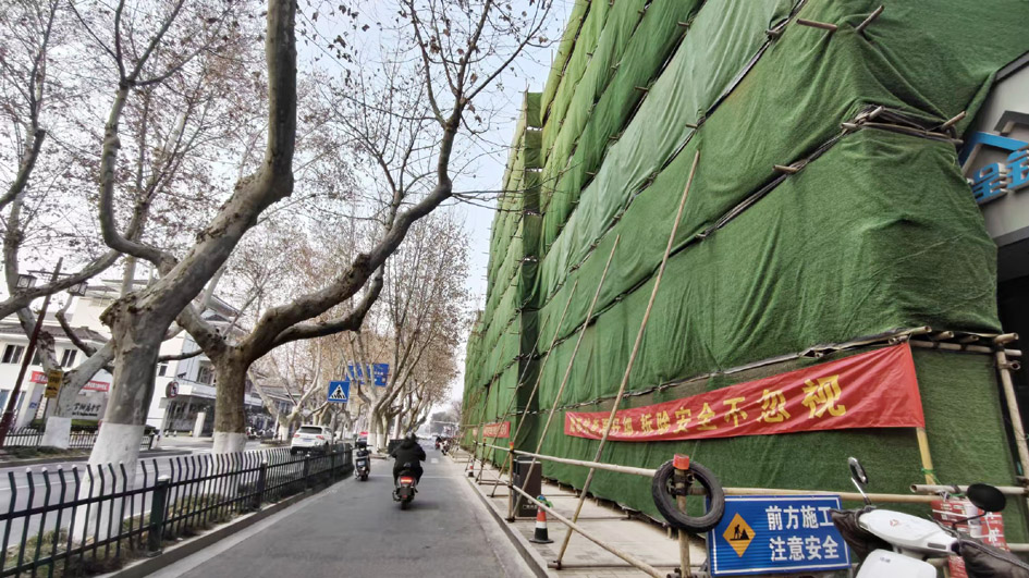 近日,记者来到网友反映的地方,看到扬州大学附属中学对面一块区域进入施工状态,周围设置了相关安全提醒标志。据附近沿街商铺人员介绍,有时灰尘、粉尘确实有点大,希望改善。