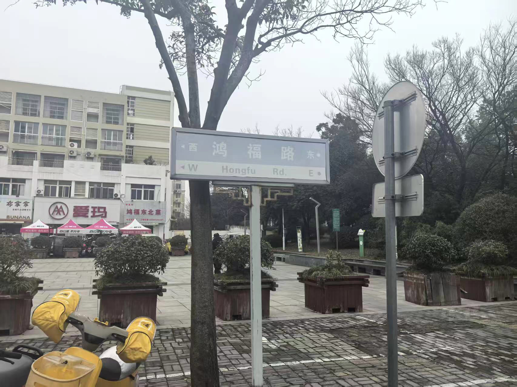 记者在鸿福路几处路口看到,路牌普遍比较陈旧。在鸿福路、江都北路交叉口,路牌上的蓝色底色已经褪色殆尽,只能看到中英文字体。记者将问题反映给相关部门,对方表示将在近期的路牌维护中,一并解决鸿福路路牌褪色问题。