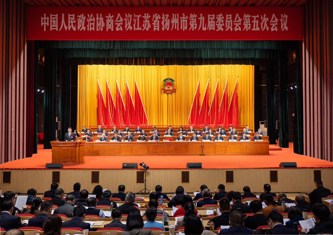 扬州网讯(记者 伊然 周晗 仁辂)凝心聚力启新程,实干争先谱新篇。1月20日上午9时30分,在庄严的中华人民共和国国歌声中,中国人民政治协商会议江苏省扬州市第九届委员会第五次会议在会议中心隆重开幕,来自全市各界的372名政协委员相聚一堂、共商大计,为奋进“十五五”新征程、高质量迈入地区生产总值“万亿之城”、推动中国式现代化扬州新实践取得新的更大成就贡献智慧力量。市委书记王进健到会并发表讲话。市委副书记、市长郑海涛,市人大常委会主任孔令俊,市委副书记、秘书长焦庆标出席会议。市政协主席陈扬作政协扬州市第九届委员会常务委员会工作报告。