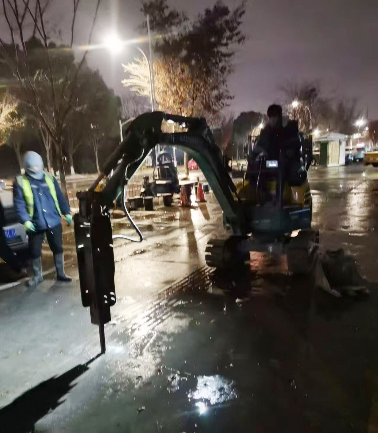 【记者帮办】由于现场溢出的水比较清澈,没有油污异味,且水压较大,记者考虑可能是自来水管破损,于是联系了长江水务抢修队伍。工作人员陈师傅表示立即到现场查看。当晚10点半左右,抢修队伍确认是一根DN110管道被冻裂了,并立即破拆路面进行维修。此时天空飘起了雪花,抢修队伍冒着风雪挖开路面,找到被冻裂的位置进行维修。维修持续了一个多小时,至1月20日凌晨2时许,抢修队伍完成路面回填并重新铺设了沥青层,确保早晨市民出行时不受影响。