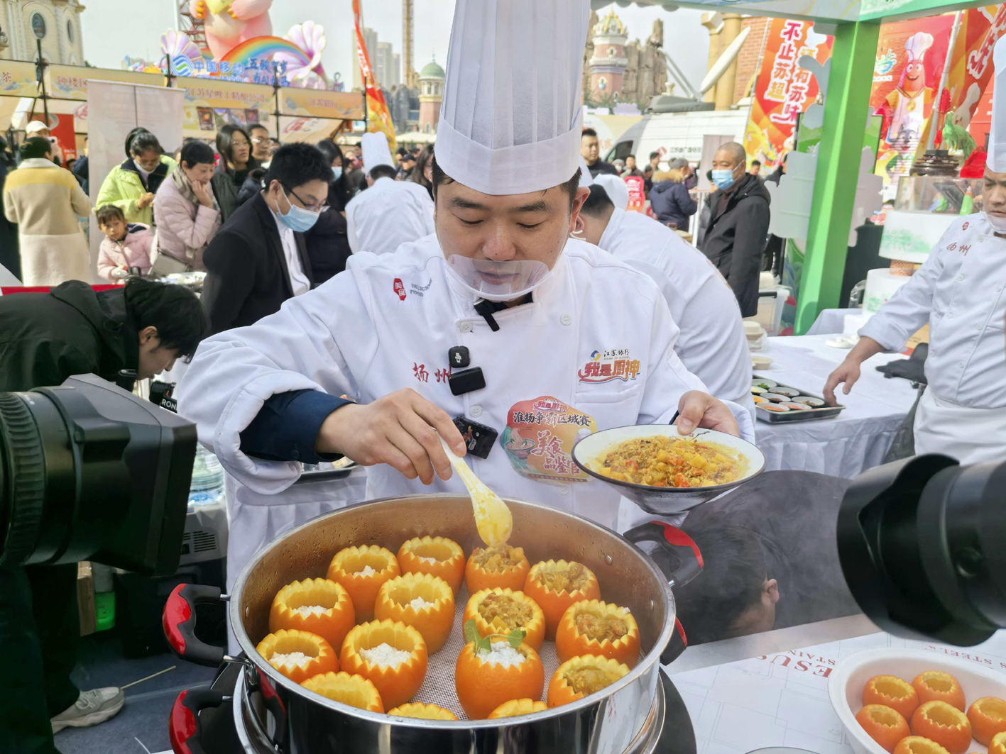 “我们用永州送来的橙子、扬州的烹饪技法,制作成了这道蟹酿橙,将螃蟹的鲜、橙子的香充分融合在一起。”前不久,《炙热游戏:百厨大战》星厨、扬州淮扬菜烹饪大师陶晓东在“我是厨神”淮扬争霸区域赛中,用在“湘超”中爆火的永州答谢江苏人民的橙子制作出了一道淮扬传统菜,让扬州美食再次成功“出圈”。