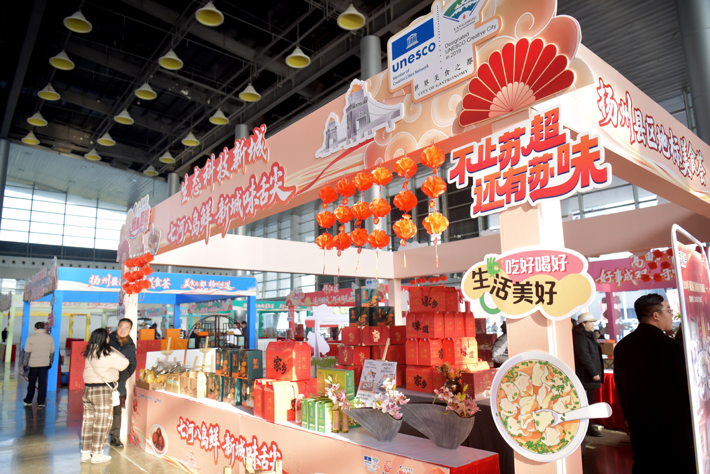 扬州网讯(记者 屠明娟) 腊月到,年味浓。2026年“悦购扬州·年货优品”促消费暨“我是厨神”县区地标美食荟活动1月23日下午在扬州国展中心启幕。近160家商户携千余种好物集结,从非遗老字号到生态农产品,从文创潮品到家电汽车,一场新春消费盛宴热闹开场。