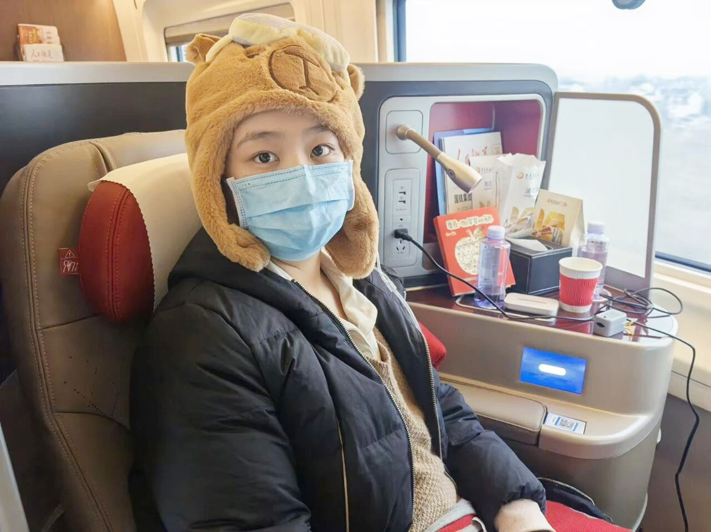 周和瑶在高铁上。