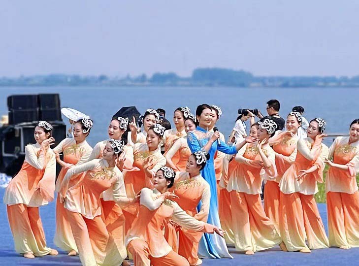 从上海归来,杨旭娟的传承之路有了更明确的方向与更广阔的平台。她不再仅仅是一名歌者,更成为一名自觉的文化传播者与播种人。她的身影与歌声,成了高邮民歌活跃的注脚:在江苏省“春雨工程”文化志愿者走进西藏的活动中,她把水乡清韵带上雪域高原;在“水韵江苏”系列省级大型公益活动的璀璨舞台上,她一次次唱响家乡的旋律。