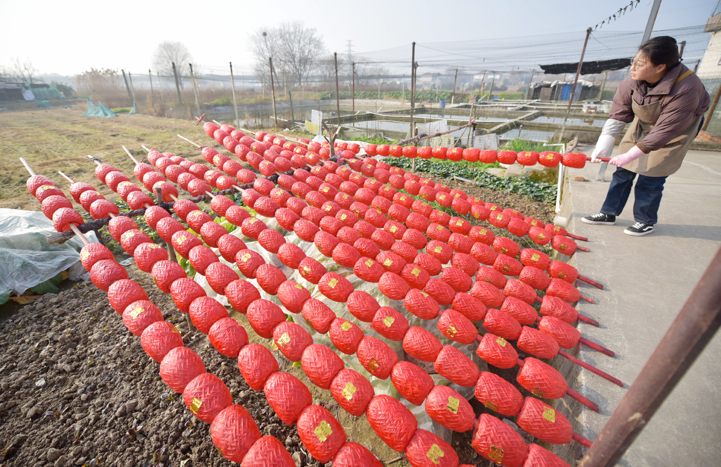 年味渐浓,在蜀冈-瘦西湖风景名胜区城北街道槐南村鸭成荡组,不少人家的庭院里、屋檐下都挂满了红彤彤的子孙灯,老艺人们正趁着晴好天气赶制、晾晒灯笼,竹篾翻飞间,600年的老手艺在指尖流转。槐南村的子孙灯制作技艺始于明代。600多年来,灯笼的材质、造型与核心工艺几乎未曾改变。一盏巴掌大的子孙灯,需历经劈竹篾、编扎框架、糊纸、刷红、剪纸、贴金喜、安装灯盘等22道工序。这种红灯笼贴上金灿灿的“双喜”字样,寓意“子孙满堂、福气绵延”。 通讯员 祁霞 记者 司新利