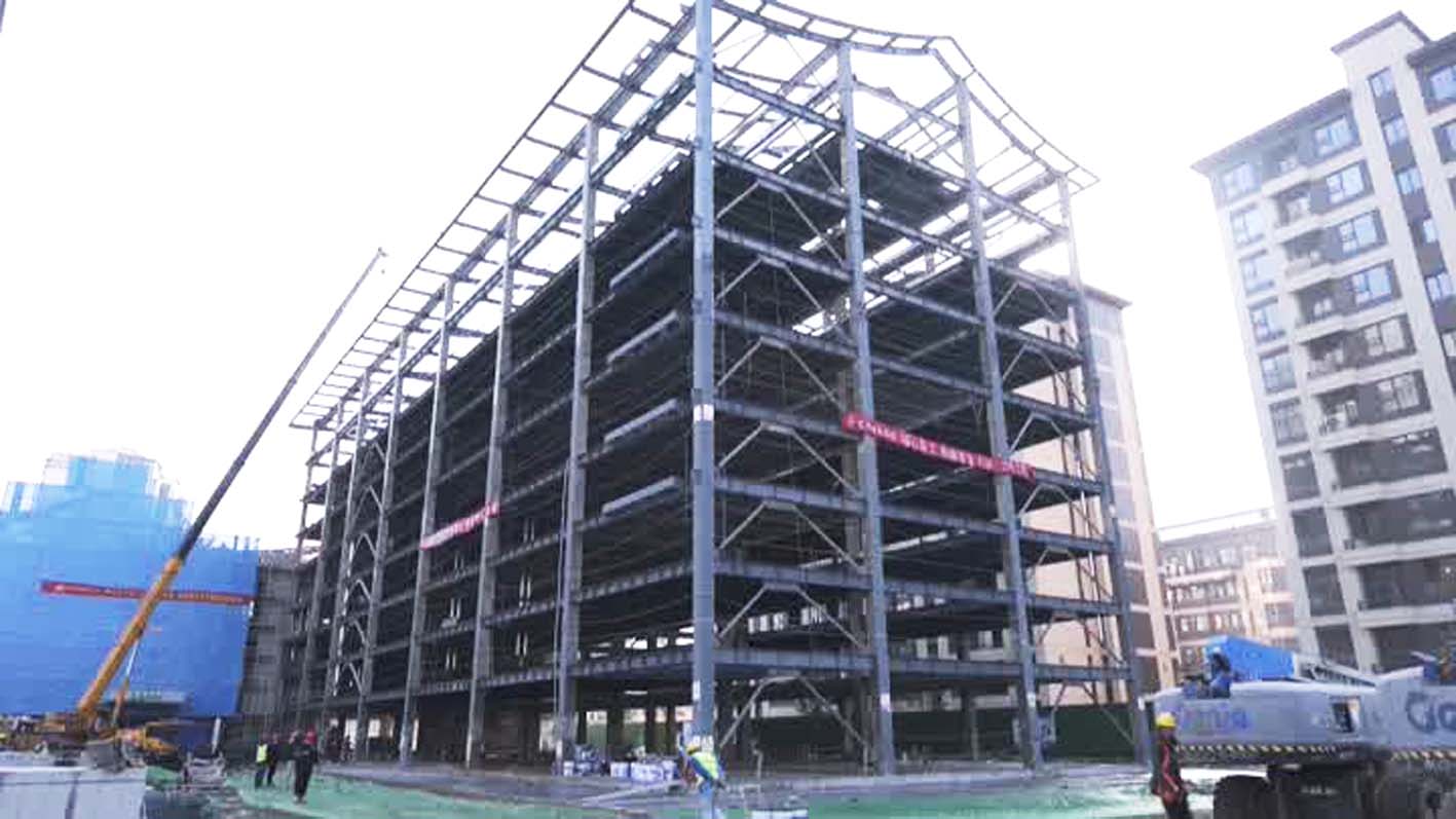 8层钢结构主体轮廓清晰呈现。