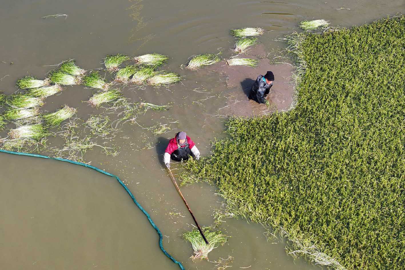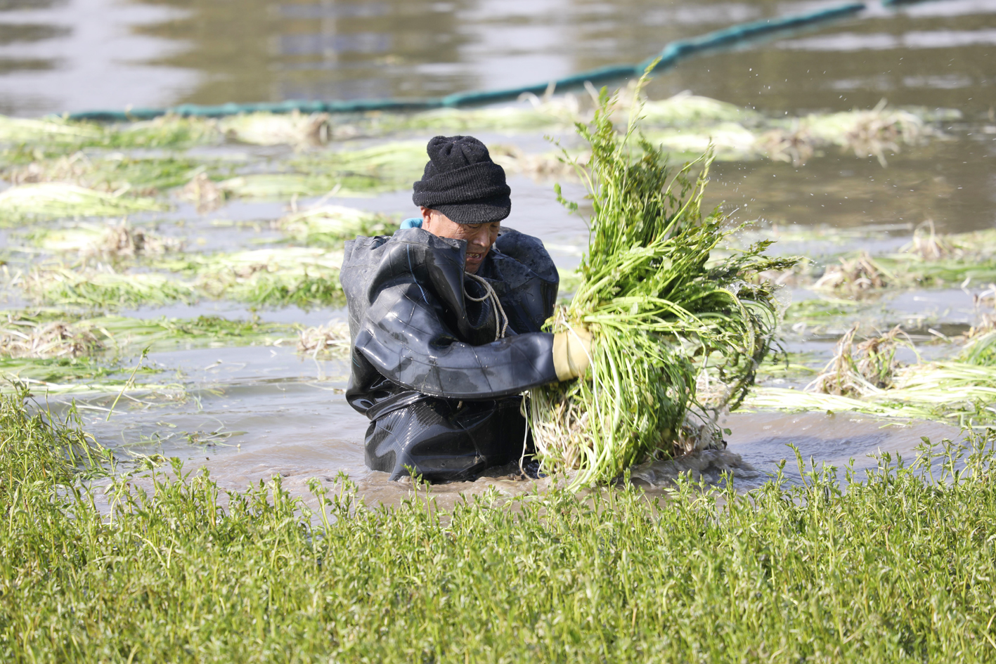 春节临近,宝应县曹甸镇李沟村的水芹田里一片繁忙,农民忙着采收水芹,为节日市场备货。