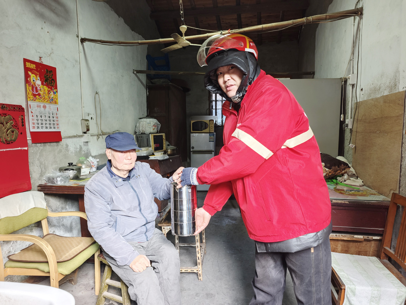 扬州网讯 (通讯员 王昶晖 于敏 记者 陈晨) 1月28日中午,外卖骑手张斌将电瓶车稳稳停在永丰巷一户老宅前,从保温箱里取出一份热气腾腾的餐食,轻轻叩响了门。“毛大爷,您的午饭到啦!”门内,残疾独居的毛育生老人接过餐盒,连连道谢:“这么冷的天,真是辛苦你了。”