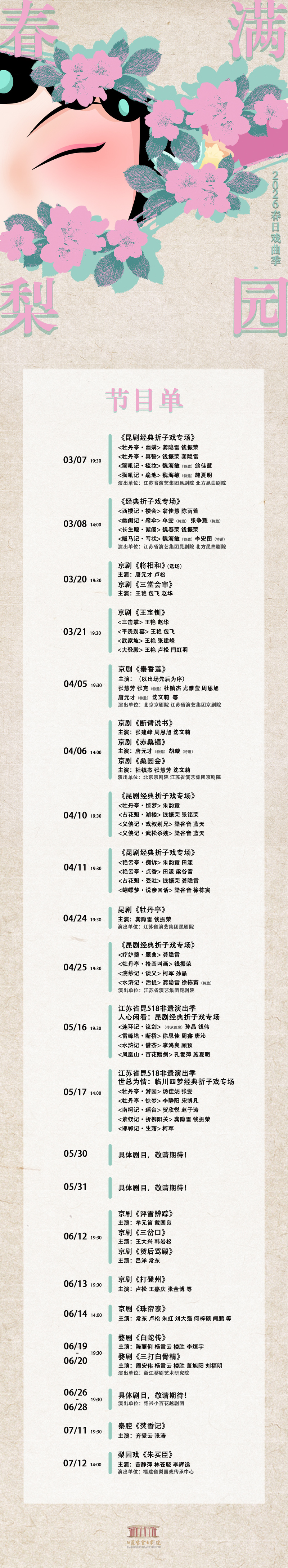 据悉,“春满梨园”戏曲季将从3月持续至7月,24台演出将于近期正式开票。