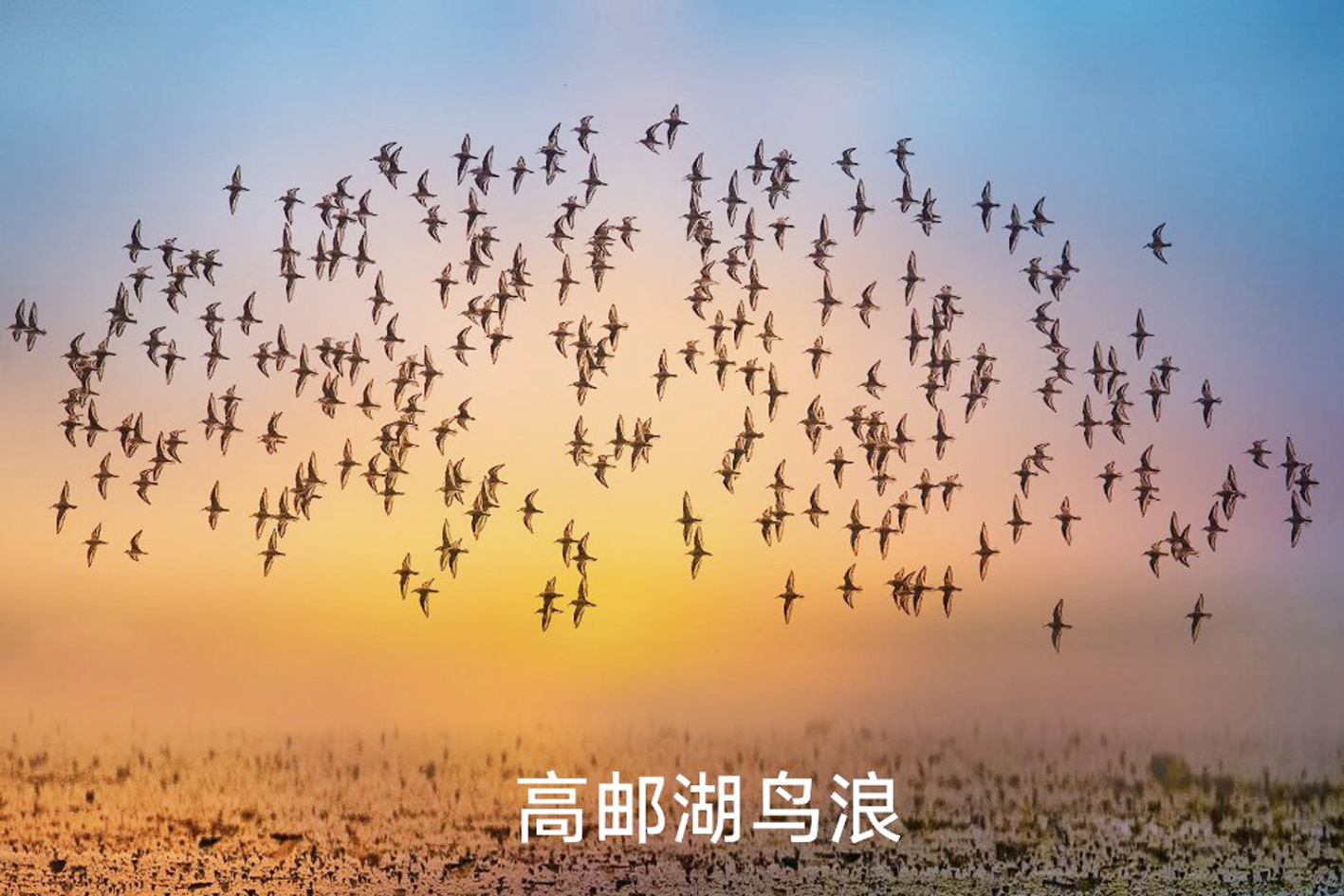高邮湖鸟浪。