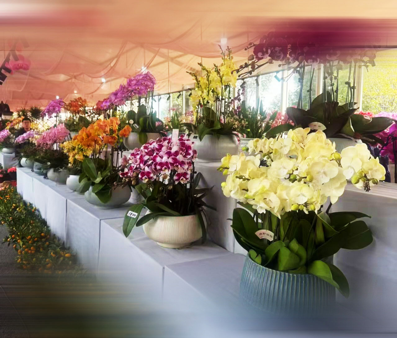 2月1日上午,记者来到花都汇年宵花市,500平方米的精品花卉展销厅内人流如织,瘦西湖、个园、何园三大主题展区各具特色。瘦西湖展区除缤纷花卉外,还陈列各式盆景。个园展厅则集中展示了60余种精品蝴蝶兰与大花蕙兰,其中不乏名品。该展厅同步推出消费满减、多件折扣、限时特价、整点秒杀等促销活动,让市民游客畅享购花实惠。何园展厅则主打高山杜鹃、空气凤梨、宝莲灯等特色名贵花卉,并提供专业养护讲解与花礼搭配服务,其促销活动更创新性地融合了何园“何堂月色”夜游门票,提升消费附加值。此外,占地4000平方米的集装箱花卉销售区汇聚近百商户,鲜切花、蝴蝶兰、年橘等热门年宵花品类丰富、价格亲民,可满足家庭装饰、走亲访友等多种需求。