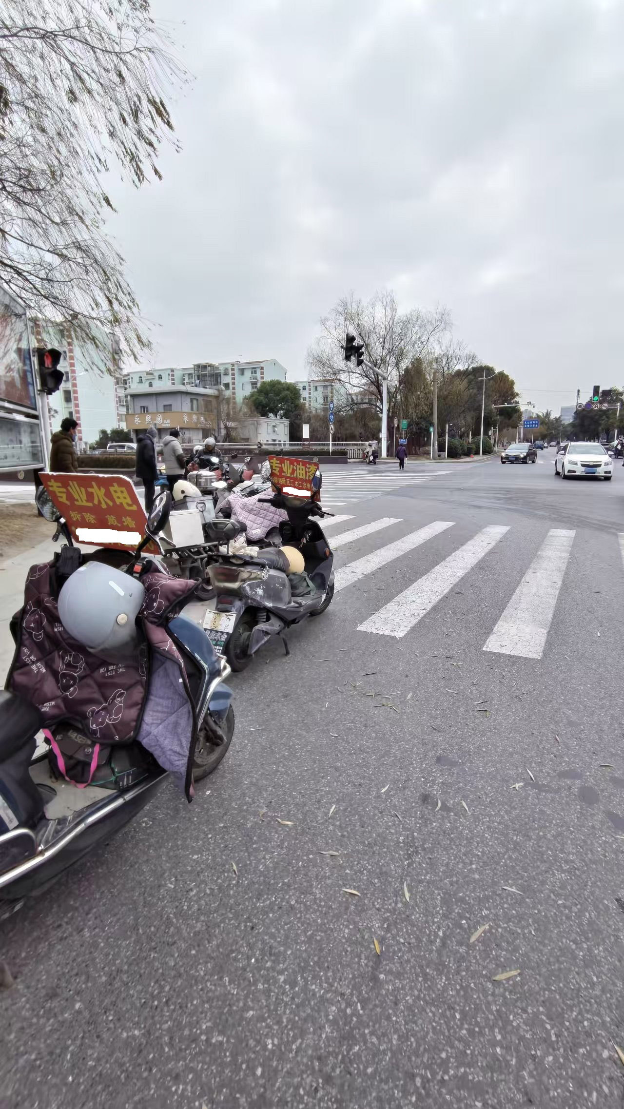 最近,记者来到新城河路与文汇西路交叉口探访,看到交叉口附近停了十多辆电动车,个别电动车还并排停放,或停在车道边,车头、车尾及显眼位置挂着“专业水电”“木工”“土工”等宣传牌,这些电动车的主人在附近逗留、闲聊。记者发现,市民骑车、开车拐弯时会留意电动车停放动向,减速慢行。