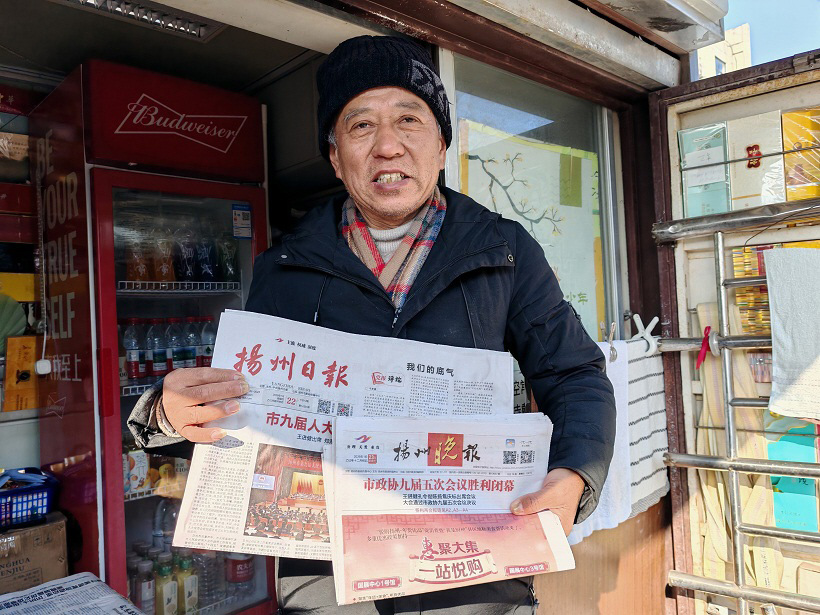 当时的报刊亭每天订15份《扬州日报》、15份《扬州晚报》、10份《扬子晚报》、5份《南京日报》、5份《参考消息》,还有少量行业报纸以及部分杂志,门前摆不下了,他就在门上拉了几根绳子,把杂志一本本插在门上。每天来往的人络绎不绝,报纸杂志卖得也快,他又搬了些电池、饮料、冷饮等回来一起售卖。
