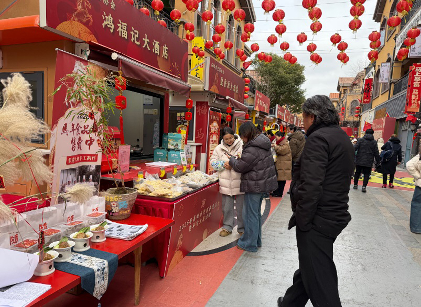 广场上,近百个特色摊位井然有序地铺陈开来,宛如一幅徐徐展开、琳琅满目的年货长卷。干果炒货的焦香、特色糕点的甜香、精品腊味的醇厚咸香……各种香气在空气中交织、碰撞,不断撩拨着过往行人的味蕾,令人频频驻足。