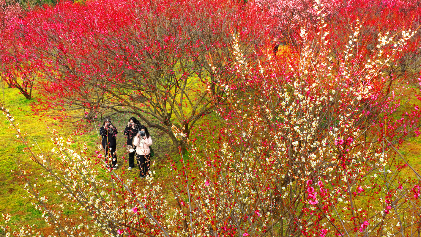 8日,暖阳遍洒大地,扬州蜀冈西峰、瘦西湖梅花岭、茱萸湾梅花山三大梅花景区,数万株春梅纵情绽放。市民游客漫步花海,赏景、拍照,沉醉于独特醉人的春梅盛景之中。 程曦 严柏平 摄