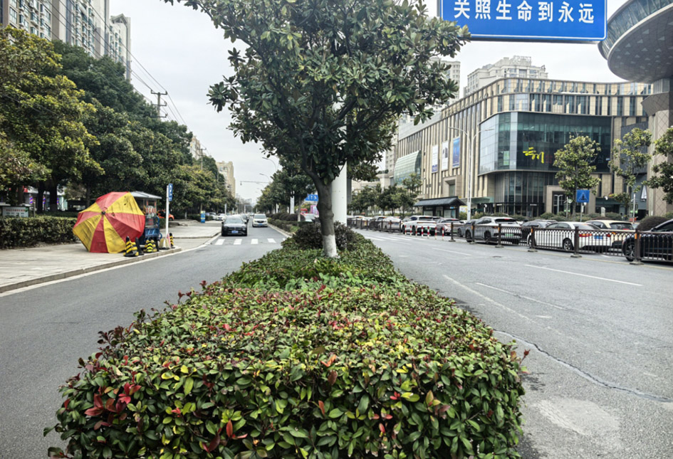 尤先生表示,这处公交站台西侧的绿化带内有一棵球形灌木,体积较大,遮挡了视线。这处公交站台有下车乘客需要过马路,而灌木对视线有遮挡,看不清楚车道上的过往车辆,有安全隐患,希望养护单位能对这处灌木进行修剪。
