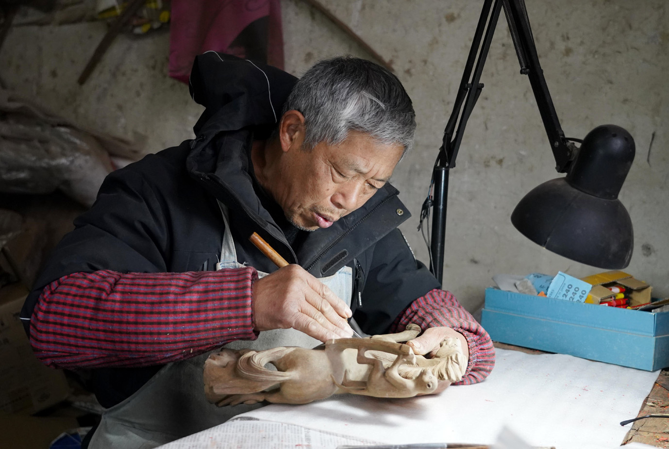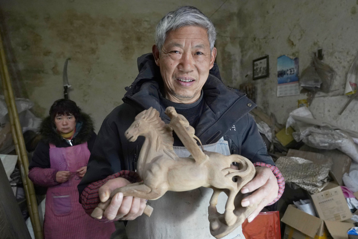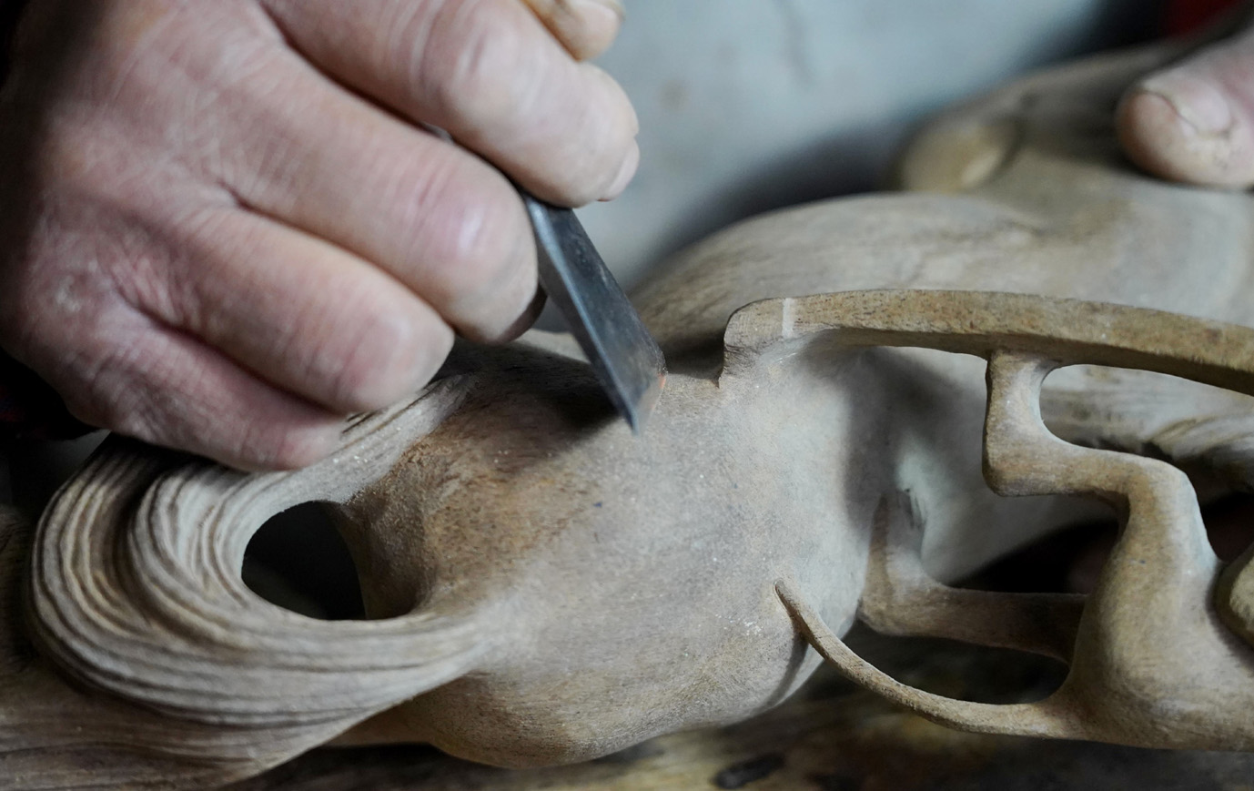 马年新春将至,在扬州市广陵区李典镇伏固村的一间古朴工作室里,木屑纷飞间,一尊尊形态各异的木雕马正逐渐展露真容。深耕木雕艺术50载的非遗匠人仲维章,以刀为笔、以木为纸,将千年生肖文化与精湛工艺相融,为新春佳节献上了一组寓意吉祥的木雕马作品,让传统文化在年味中焕发新生。