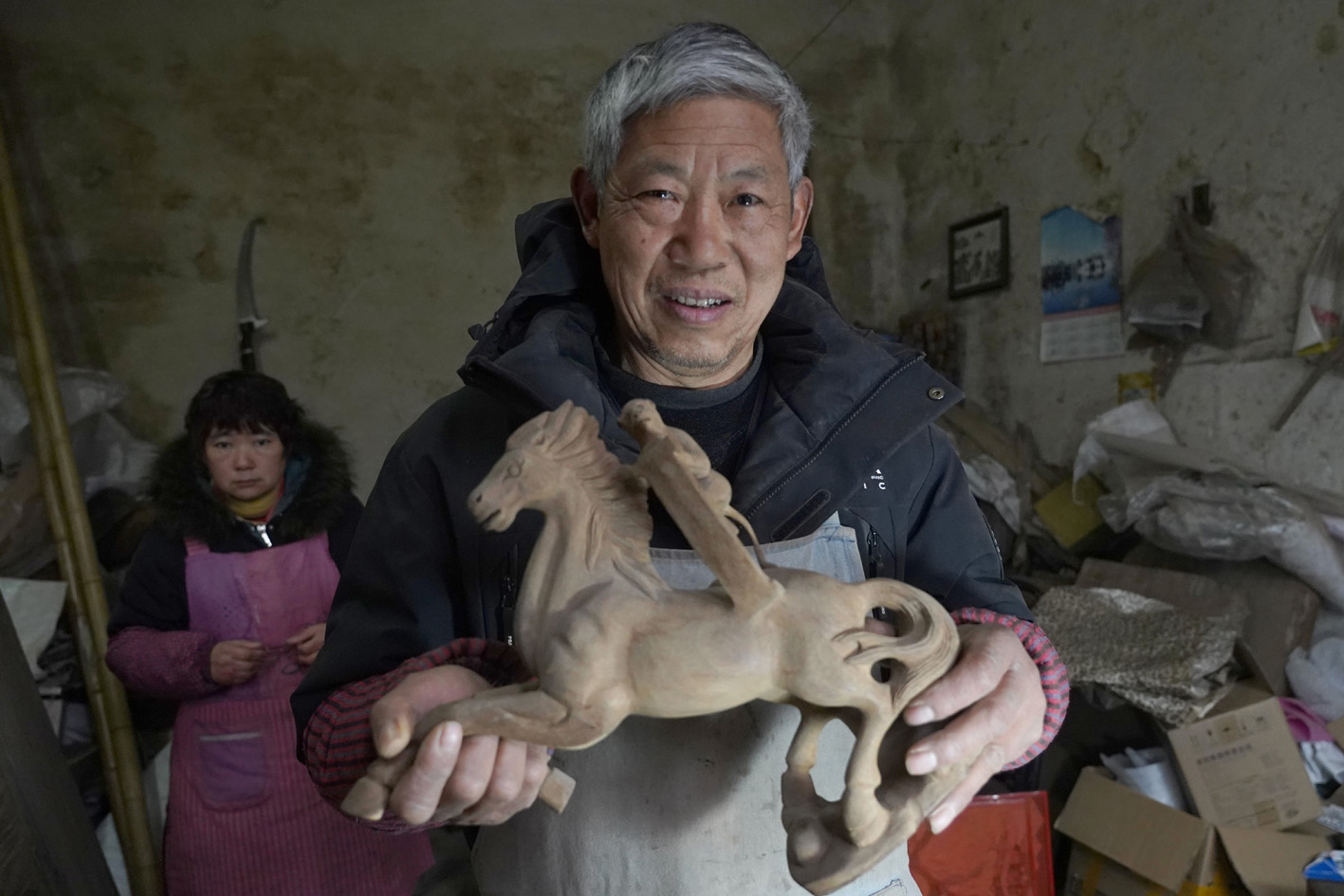 在马年新春到来之际,在扬州市广陵区李典镇伏固村的一间古朴工作室里,木屑纷飞间,一尊尊形态各异的木雕马正逐渐展露真容。深耕木雕艺术50年的非遗匠人仲维章,以刀为笔、以木为纸,将千年生肖文化与精湛工艺相融,为新春佳节献上了一组寓意吉祥的木雕马作品,让传统文化在年味中焕发新生。
