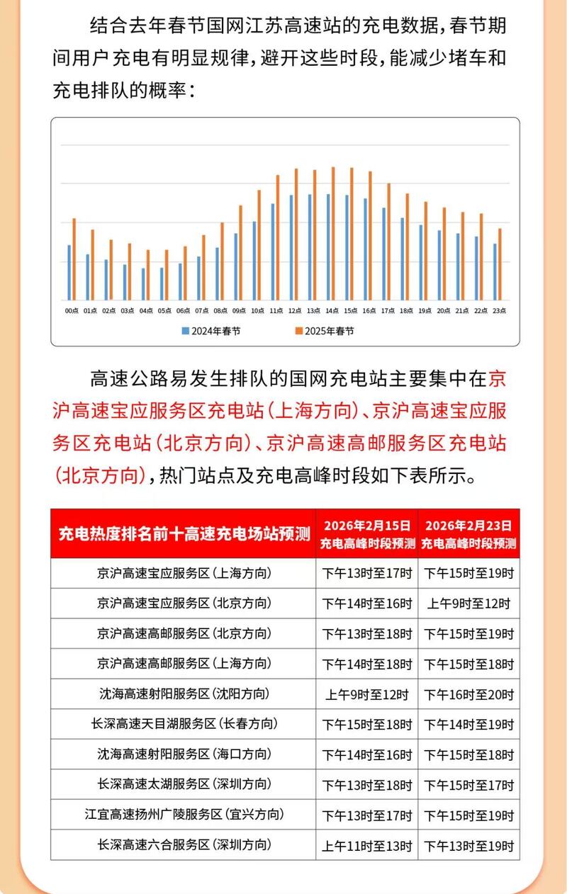 据交通部门最新公布数据:春节期间,江苏高速公路日均出口流量预计将突破340万辆,同比增长4.5%,充电需求同步攀升。为此,国网江苏电力不仅增加基础设施,更通过技术手段提升服务体验。