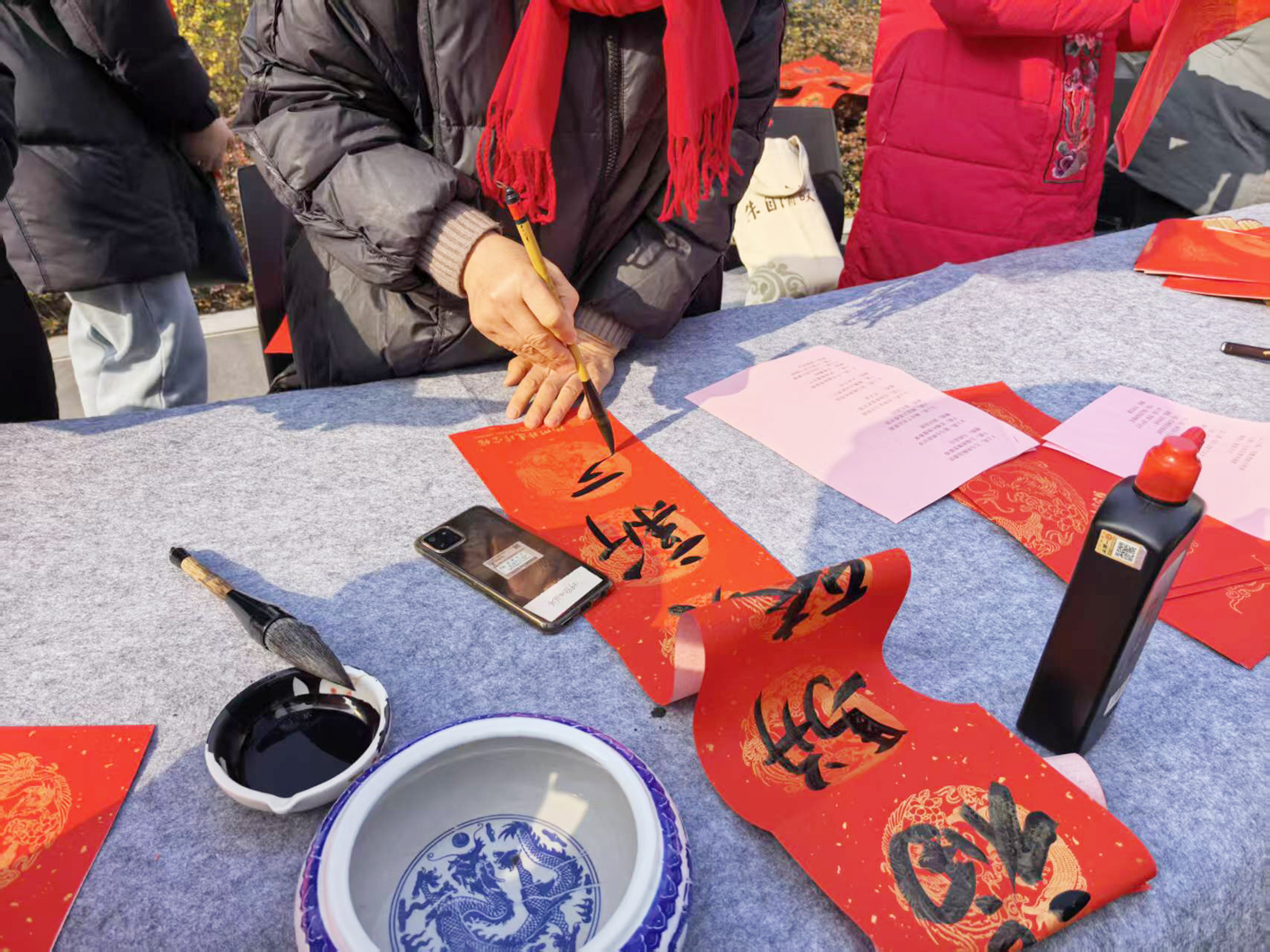 书法老师现场写春联。