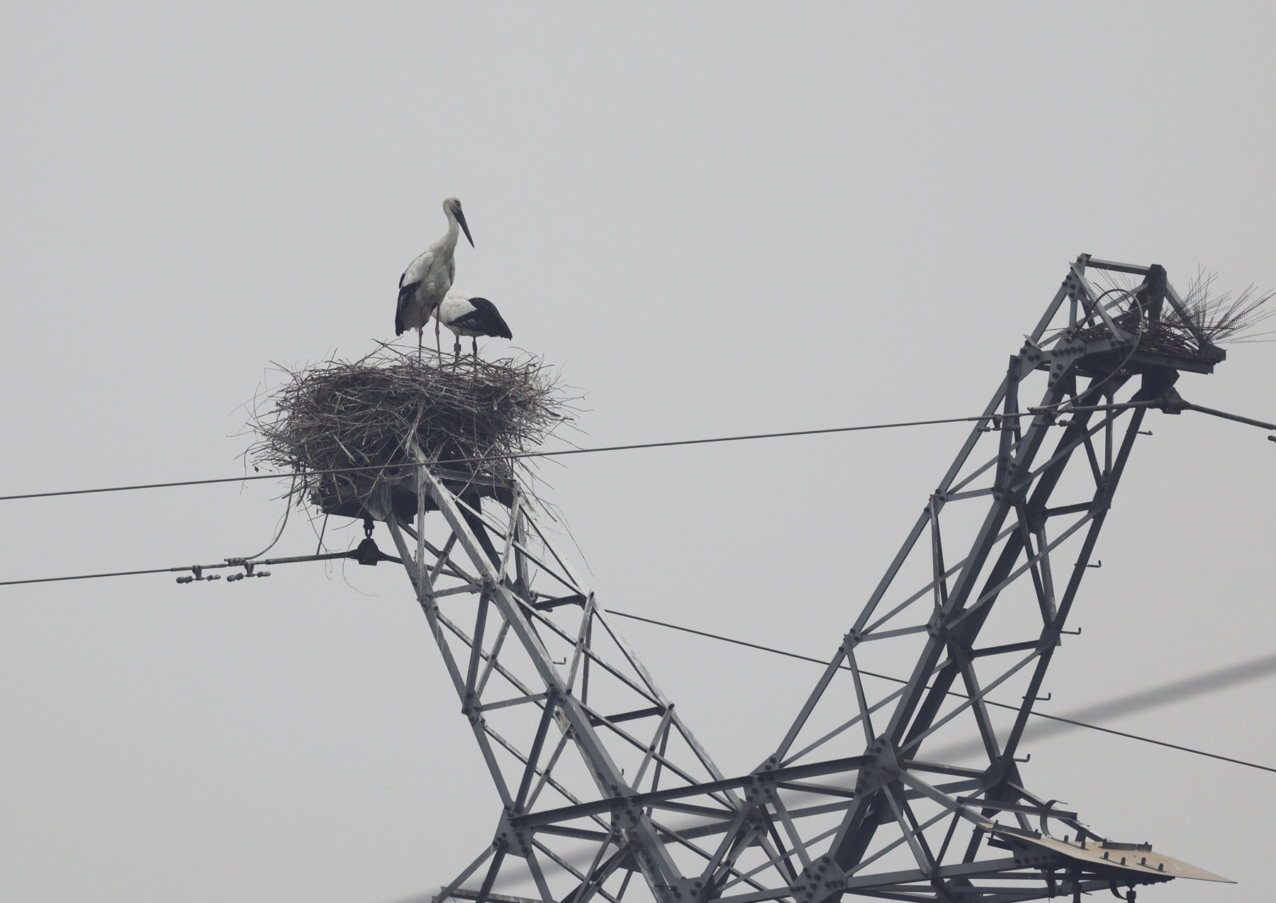 东方白鹳“X15”夫妻在巢穴里