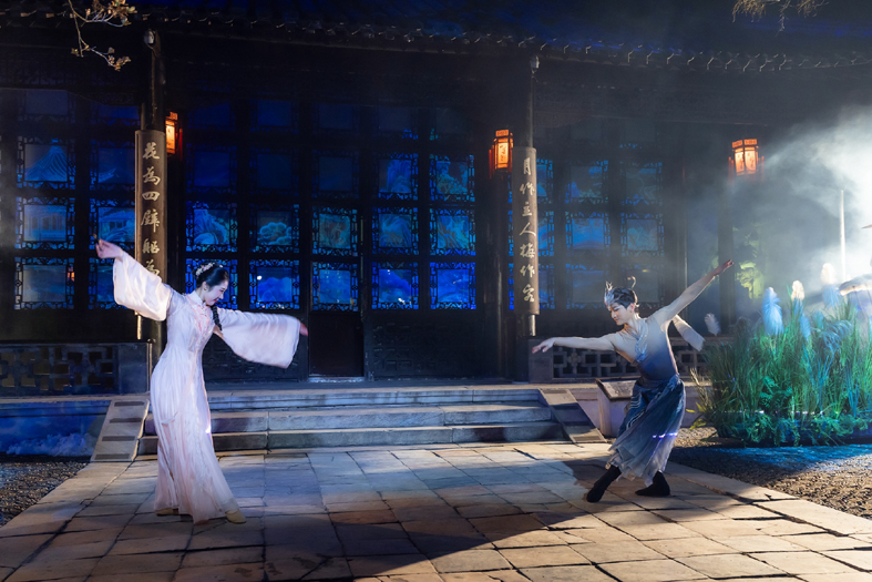 “何堂月色”沉浸式夜演旨在将整座园林化作无屋顶的戏剧舞台,以“光影+演艺+互动”的创新模式,让沉睡的砖瓦草木皆成故事载体,实现从“看园”到“入景”的深度升级。