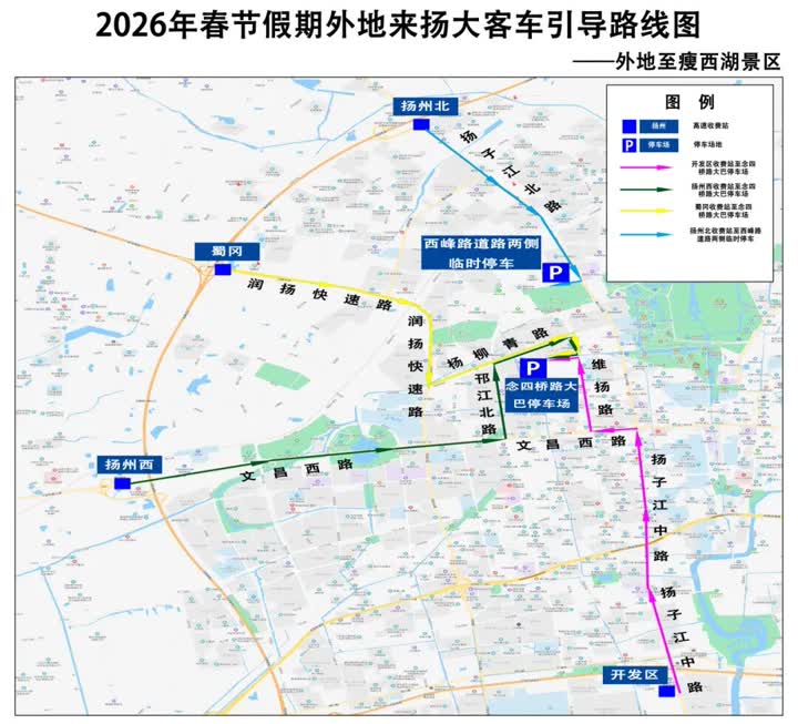 瘦西湖收费站—瘦西湖路—万福西路—江都路沿线临时停车区