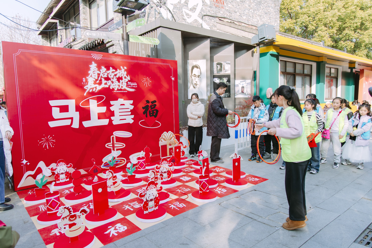 活动现场安排了丰富的互动体验。套圈、投壶、猜灯谜等传统民俗游园游戏贯穿全天,市民游客可免费参与,赢取抽奖机会。每日的文艺演出将在10:00、14:00、16:00定点上演,为街区增添动感与活力。正月初五(2月21日)上午10点,一场别开生面的“初五踩街狂欢”将把活动推向高潮——快板、木偶、国风舞蹈、少年艺演等将沿街巡演,让市民在欢腾中迎接新一年的好彩头。