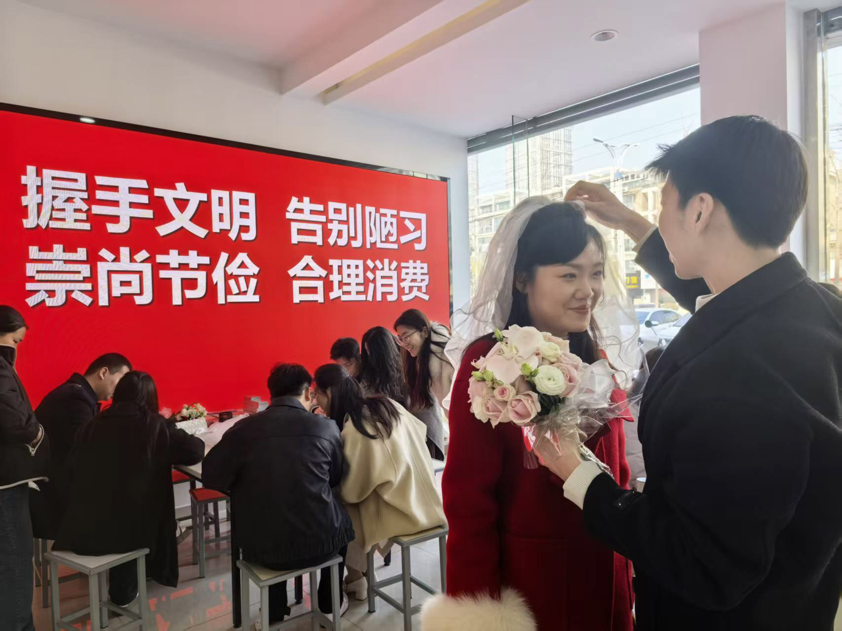 婚姻登记“全国通办”自2025年5月10日起正式实施,取消了婚姻登记的户籍地限制,新人仅需携带有效身份证件及办证照片即可在全国任意婚姻登记机关办理新婚登记。2026年情人节是该政策落地后的第一个情人节,恰逢春节长假前夕,结婚登记预约异常火爆,为应对高峰,我市各婚姻登记机构提前做好预案,优化服务流程,确保登记有序进行。